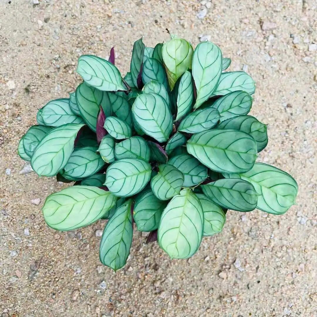The plant type of Arrowroot is relatively small (the plant height is 10-30 cm), the leaves are broadly elliptical-lanceolate, the leaves are shiny, the leaves are silver-gray-green base, the veins and margins have emerald green bands, and the leaves are brown red on the back.