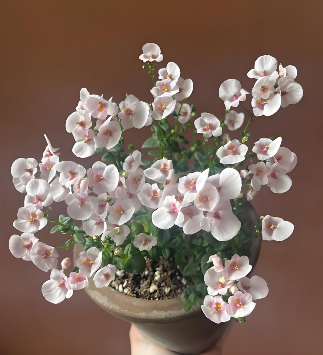 ? The hard-branched old crow's mouth is also known as the blue hanging bell, flower Unique, the purple petals and the apricot color of the throat complement each other, adding a bit of delicacy.