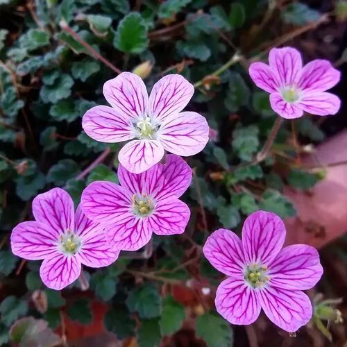 A perennial herbaceous plant of the genus Jifengdew, The plants and flowers are very small The flower is also a classic five-petaled flower, with obvious purple texture on the purple petals. Although it is a delicate and weak little flower, people Long flowering period and large flowers (open almost year-round), and There are also double petal ones !
