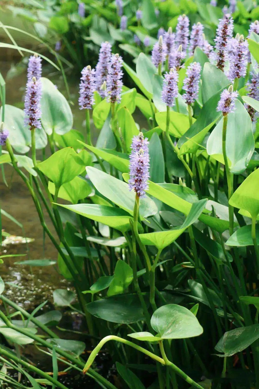Barracuda is a perennial emergent or wet herb (plant height can reach 150 cm), Both leaves and flowers are of ornamental value (The leaves are large and smooth, and the leaves are green in color; Spikes are terminal, with dozens to hundreds of small blue-purple round flowers densely clustered on each ear, with two yellow-green spots on each of the upper petals, and the texture is translucent), which is often used in garden wetlands, waterside and pond greenery. Flowering period May-October.
