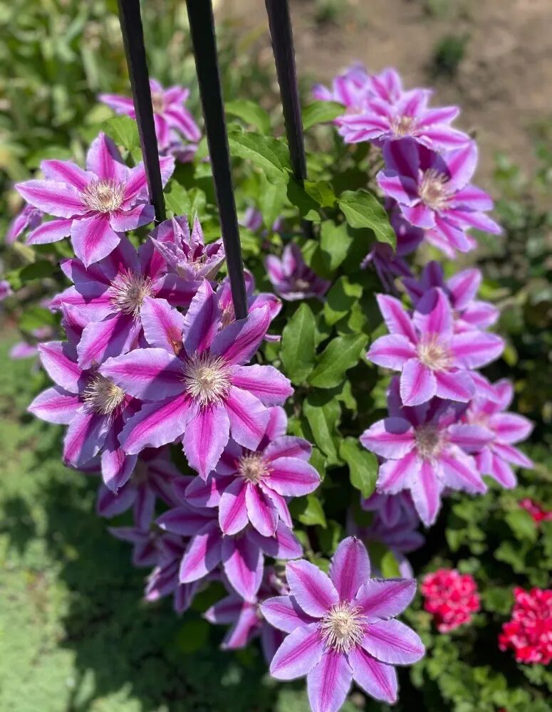 Pink Champagne is the first clematis variety (plant 2-3 m) to buy. It prefers the semi-shade environment and has a faint floral fragrance (Generally, clematis has no floral fragrance), a single-petal flower with a flower diameter of 12-16 cm, with a bright dark pink color. There is a slightly lighter ribbon in the middle of each petal, which is very dazzling under the sunlight.