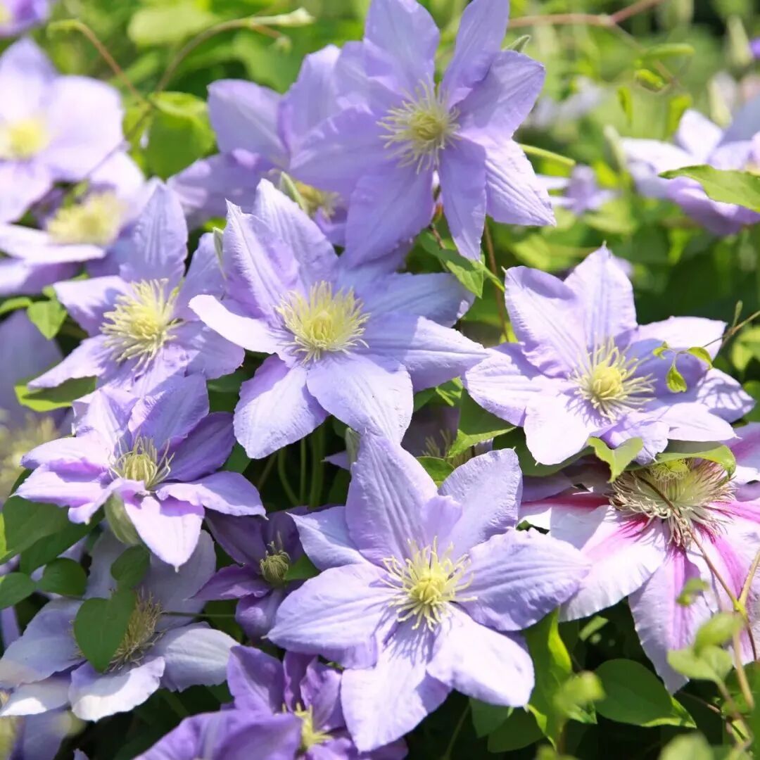 Bee Love, also called Celebration, is a very famous clematis variety (plant about 2 m). The flower diameter is 15-20 cm, the rare lilac color is the main color, and there is a magenta pattern in the middle of the petals, which is fresh and delicate.