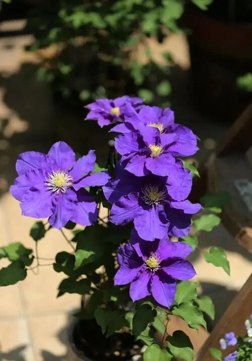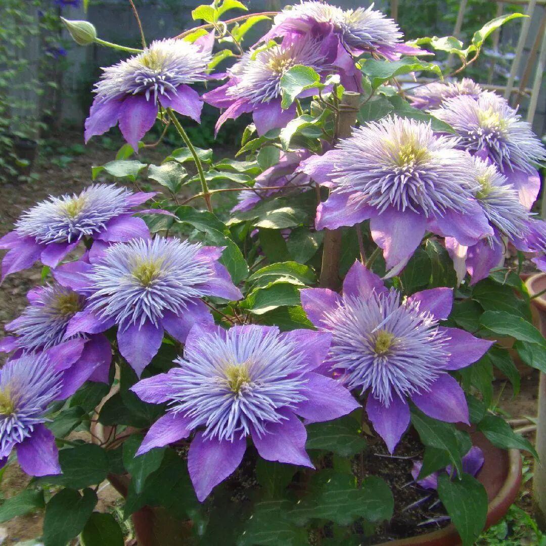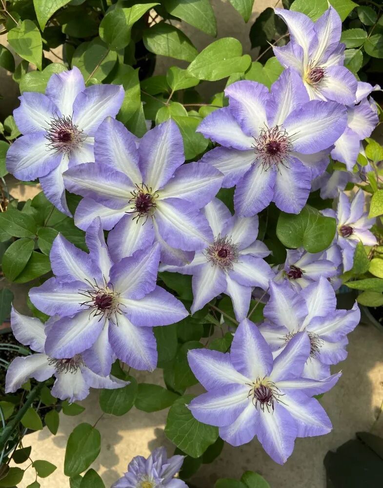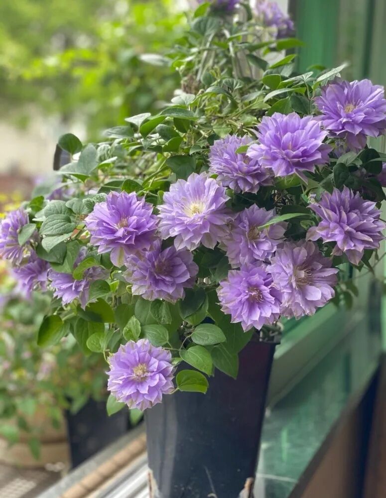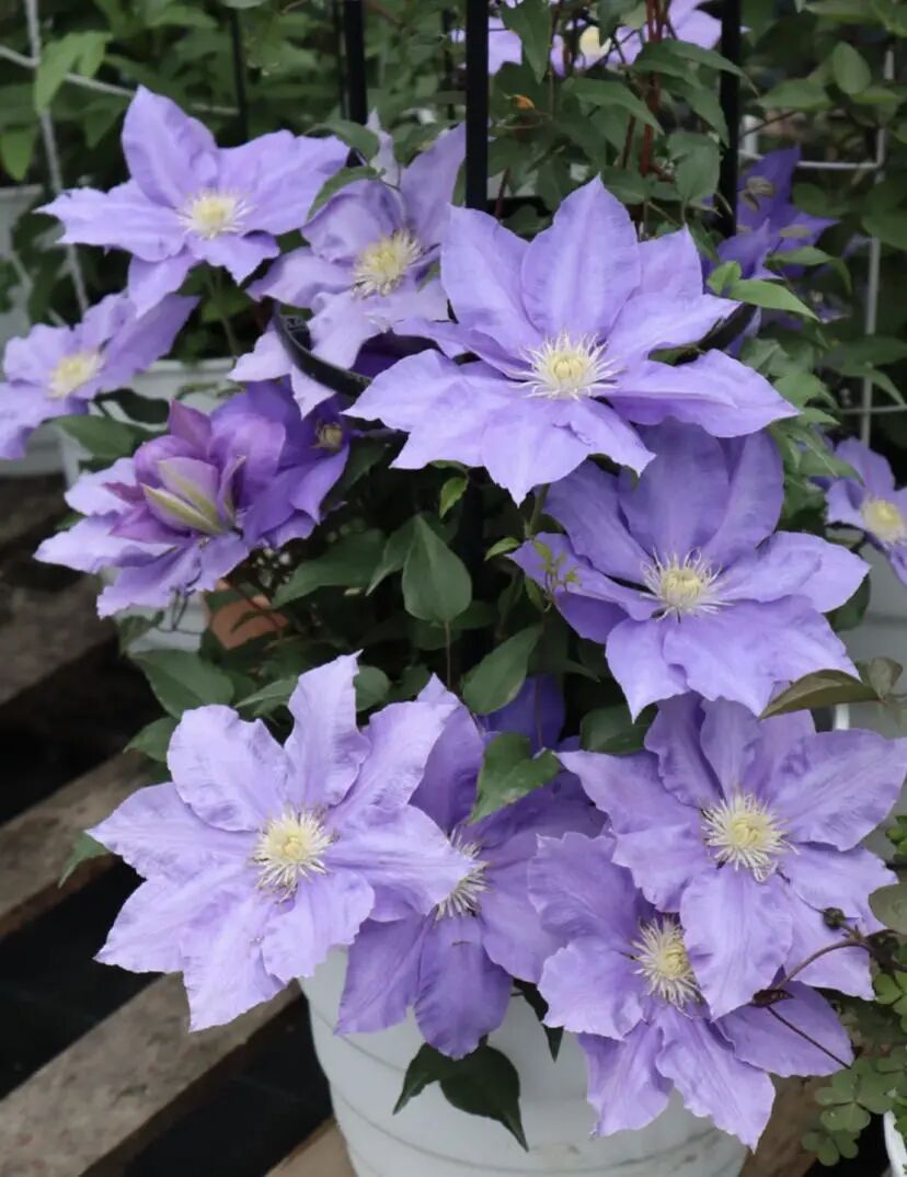 Cezanne It is a relatively short variety in the clematis family (the plant is at most 1.5 m). The plant is not big, suitable for raising on the balcony 。 Both new and old branches will bloom (usually single flowers, sometimes old branches will bloom double flowers), with a flower diameter of 10 ~ 12 cm, purple to sky blue color, fresh and elegant.
