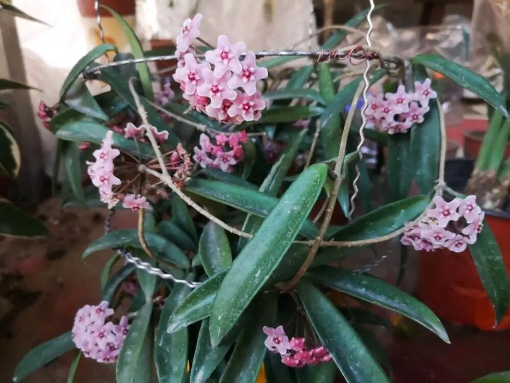 Potter's hoya is special in its leaves and flowers, which are thinner and broad lanceolate than other hoya varieties , The flowers resemble starfish, with pilose petals and a vanilla-like fragrance.