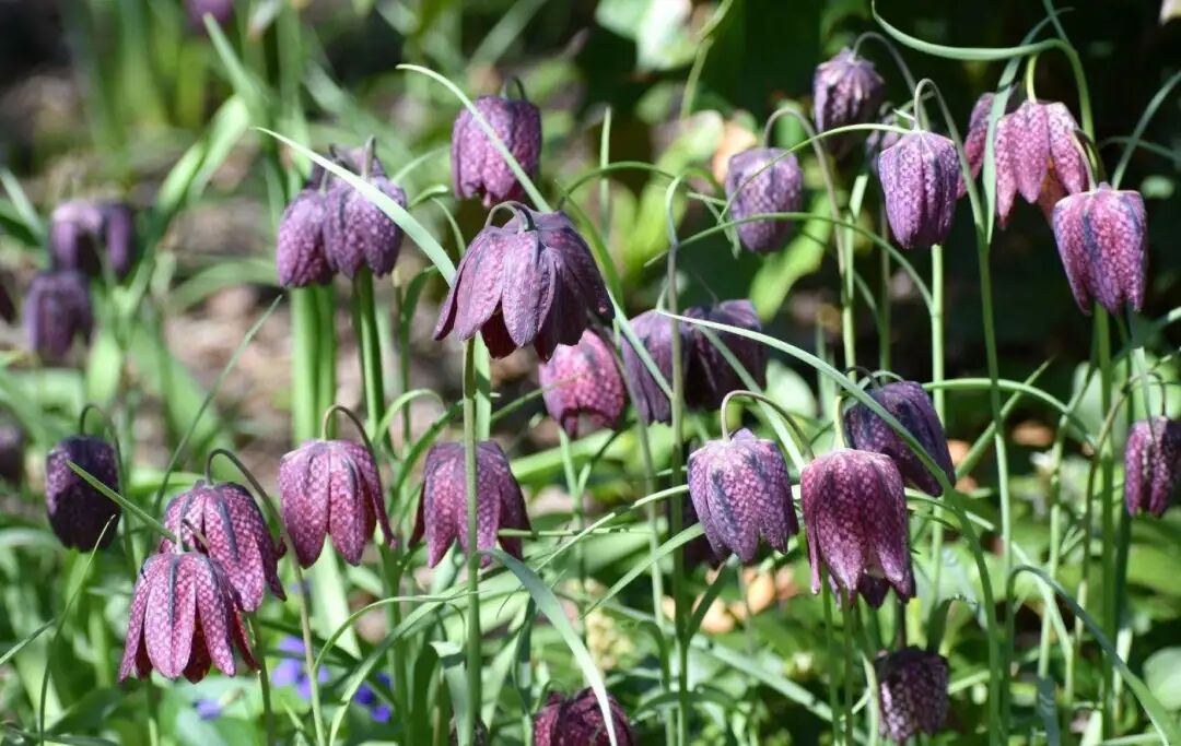 Like ordinary Fritillaria, the flowers of Fritillaria plaid also want to hang bells, but each Purple red There are obvious slightly lighter squares on the "hanging bells".