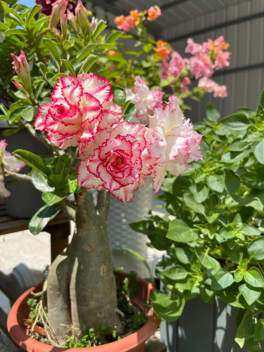 Desert rose, which means like a rose in the desert, is originally a species rooted in the desert (Sun tolerance, drought tolerance, poverty tolerance) Naturally, it is easy to raise. It also needs plenty of sunlight (Please put it in a sunny place) Otherwise it wouldn't bloom.