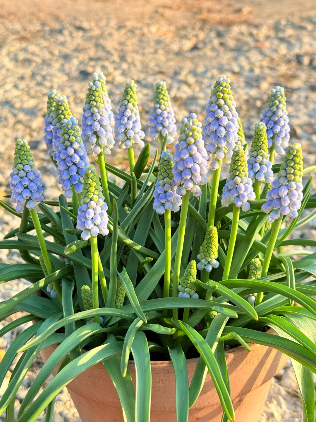 Is a smaller bulb than a tulip (The flowering period is also much different) , blooming like clusters of grapes. How to describe their strong survival ability? ↓
