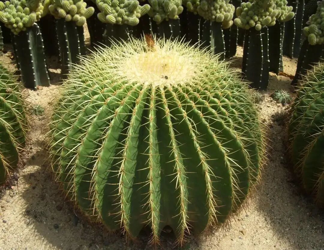 Jinhu cactus is a more attractive representative of cactus. The sphere is round and green, with hard golden thorns on it. Generally, Jinhu cactus can grow to about one meter, and the top of the sphere will have golden fluff, which is domineering and beautiful, and it is convenient to cultivate.
