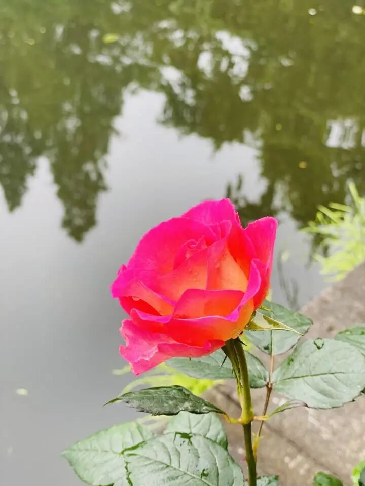The flower diameter is 13-16 cm, double petals (petals), red and yellow mixed colors, strong fragrance, repeated flowering in many seasons.