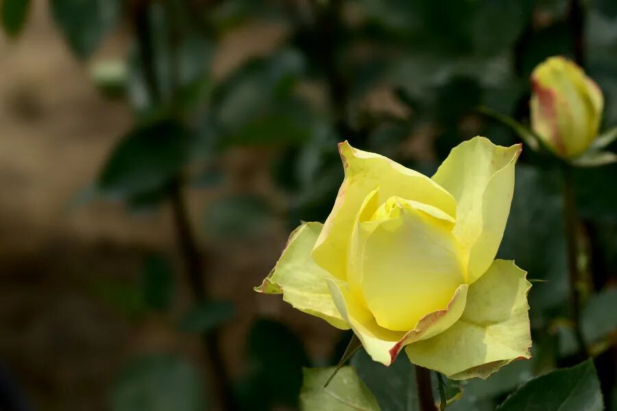 Features: Large flowers, frequent flowers, rich and gorgeous colors (light yellow petals with red halo), high-center curled flower shape, dense branches and leaves, and thin branches.