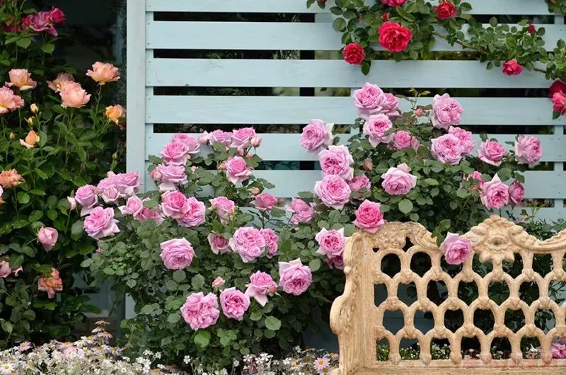 The flower diameter is 12-14 cm, double petals, pink, with strong floral fragrance, repeated blooming in many seasons.