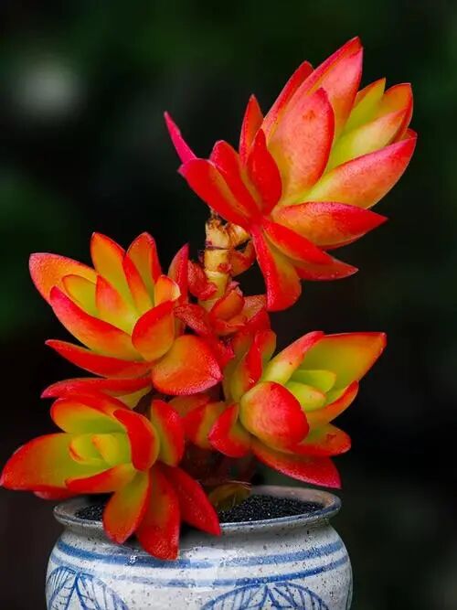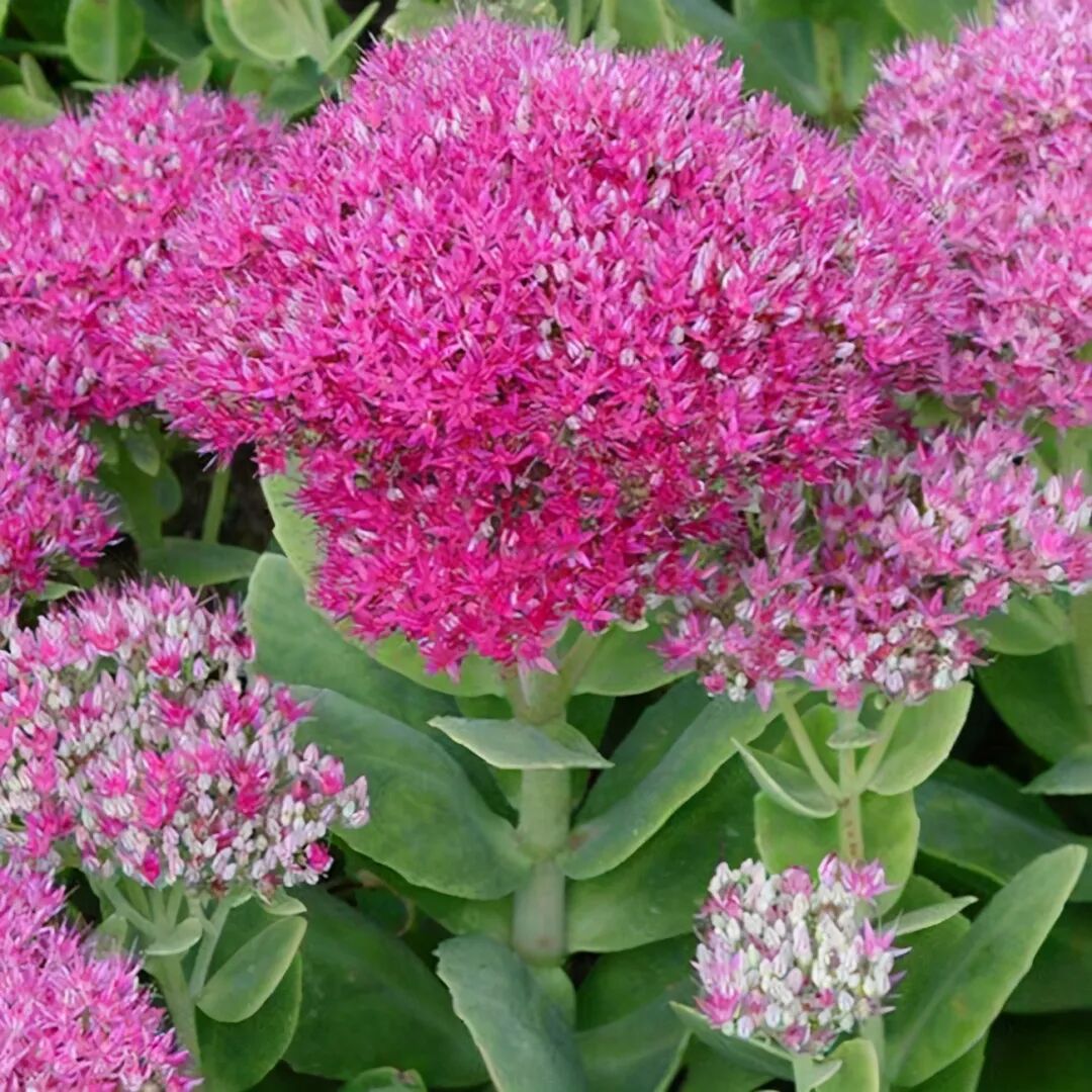 Fleshy leaves obovate, with undulate teeth, verticillate or opposite. The underground stems are thick, the above-ground stems are clustered, thick and upright, and the whole plant is slightly covered with white powder and gray-green. The plants are neat, the corymbs are dense as flat heads, and the group effect is excellent when flowering. Common flower colors are white, purple and rose red varieties.