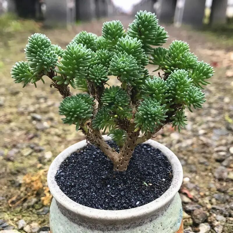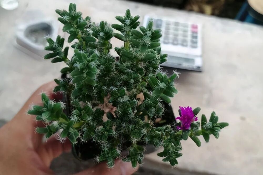The fleshy leaves are approximately needle-shaped, clustered at the front end of the branches, lush and green. Pine bulbous plants are short, with short branches, and the plant type is approximately globular. The new branches are light green, and then gradually turn gray-white.