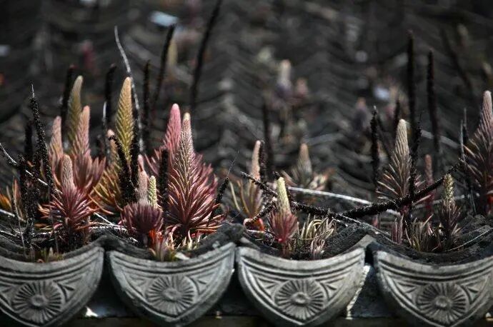 Leaves linear to lanceolate, spiny, alternate. The inflorescence is compact and pyramidal. It is said that old houses will grow on the roofs.