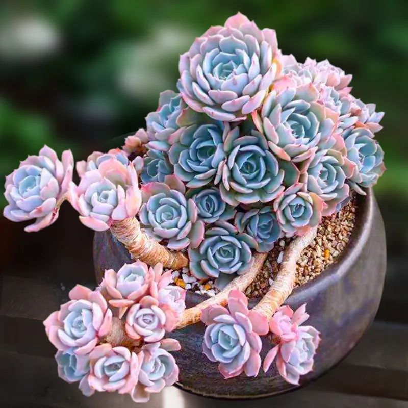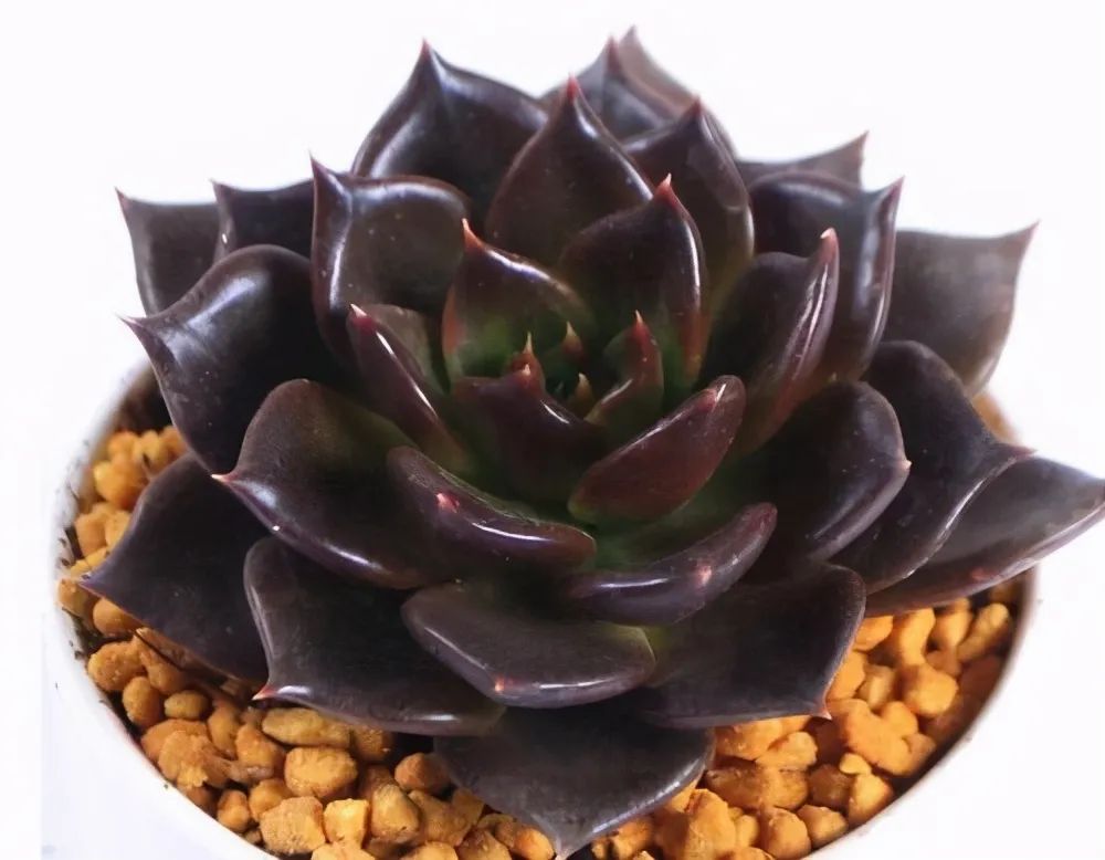 The blades are spoon-shaped, slightly thick, with small tips at the top, arranged in a rosette shape. The leaves are black and purple, like peonies blooming. It grows quickly and has lush branches and leaves.
