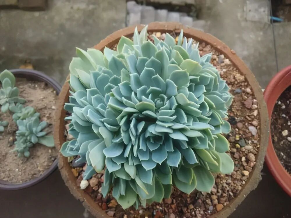 The leaves are spoon-shaped, wide (the leaves can reach 15 cm in length and 5-7 cm in width), arranged in a rosette shape, and the whole plant is covered with white powder. The leaf color is generally light green or light blue, and it is easy to gradually turn pink from the leaf edge or bottom leaves in the environment of large temperature difference or low temperature and long sunshine time.