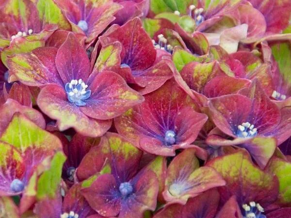 Kaleidoscope is a hydrangea variety with very good cold resistance. The flower color is composed of red, purple and green. Generally, the middle part of the flower is blue-purple, and red and green will show different states according to the change of pH of the growing environment and the change of flowering period. Kaleidoscope It belongs to an old branch flowering variety, with a flowering period from July to September.