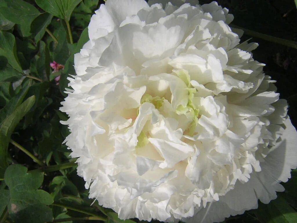 Fragrant jade plants are tall, with crown-shaped flower shapes (sometimes lotus-shaped or tuogui-shaped), round and pointed buds, two rounds of outer petals, large and flat, with purple halo at the base, well-proportioned and dense inner petals, hemispherical, and a small number of stamens intermingled with petals. The pistil degenerates and becomes smaller or the petals turn into green colored petals. The flower is light pink at first, and it is as white as jade when it blooms. The flower diameter is about 20 cm. Xiangyu is the most fragrant variety of peony.