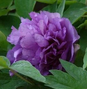 The plant of Qinglong Womochi is about 150 cm high, with a tuosmanthus-shaped flower type (sometimes crown-shaped). The peripheral petals are wide and round, and the inner petals are finely fragmented and curled. The flower color is light ink purple (the base of the petals is obviously darker), the pistil petal in the middle turns turquoise, the flower diameter is about 19 cm, and the single flower flowering period is long (it can last for 10-15 days, and the lower the temperature, the longer the flowering period). It is one of the famous ancient peony varieties.