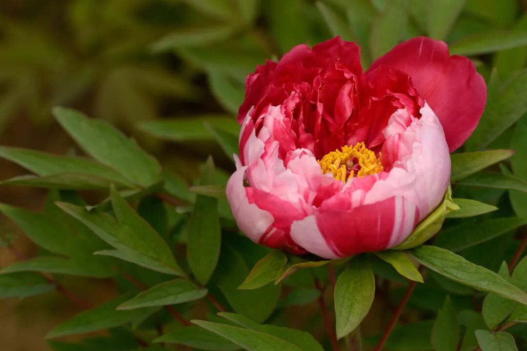 The plant is about 200 cm high, rose-shaped, with a flower diameter of about 16 cm. The buds are oblate, the petals are very hard in texture, and the flowers are closely arranged and densely sparse. The flower color of Hua Erqiao is red and white, and sometimes the two colors are mixed with pink and purple (but it is difficult for flower friends to produce multi-colored flowers in the actual planting process, which is difficult to plant this variety and requires high planting environment). It is a rare polychromatic peony.