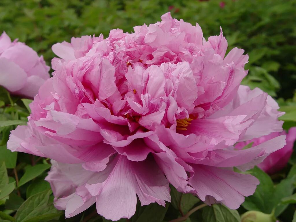 The plant type of Zhao powder is medium-tall, and the flowers are crown-shaped (sometimes lotus-shaped, golden-ring-shaped or Tuogui-shaped). The flower buds are large and pointed, and the outer petals of the outer wheel are large and thin in texture; The inner petals are soft, delicate and neat, with stamens often mixed between the petals, and the pistils degenerate and become smaller or petaled. The flower diameter is about 18 cm, pink color, It is the youngest of one of the four famous peony products.