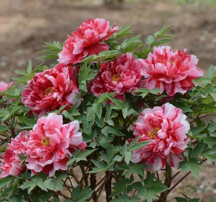 Island brocade belongs to a multi-color peony variety, with chrysanthemum type (sometimes rose type), round buds, large, moist and hard petals, neatly arranged, pure red, half red and half pink, red stripes and vermicelli alternating colors, etc. Sometimes it will also bloom in the full red color of the original sun, with a flower diameter of about 18 cm. Island brocade is a bud-changing variety of Sun and Hua Erqiao, which can be called the best product of multi-color peony.