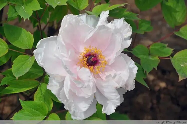 Genus Crown peony , In flower color With blue, Light red halo at base. Blue Oiran's The outer valve is rounded, Inner Flap wrinkled, dense, end Fissure of acute teeth, few between valves Amount residual male Rui.