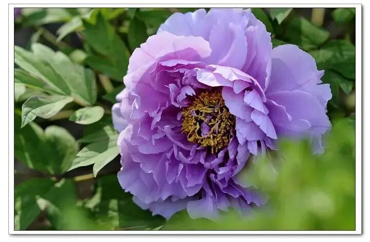 Genus Crown peony , Pink flower color Slightly bluish halo ( Base Partial Deep ) , petal Outer valve width , the inner petals are straight, the male and pistil stamens are petaled, and there are occasionally incomplete stamens between the petals.