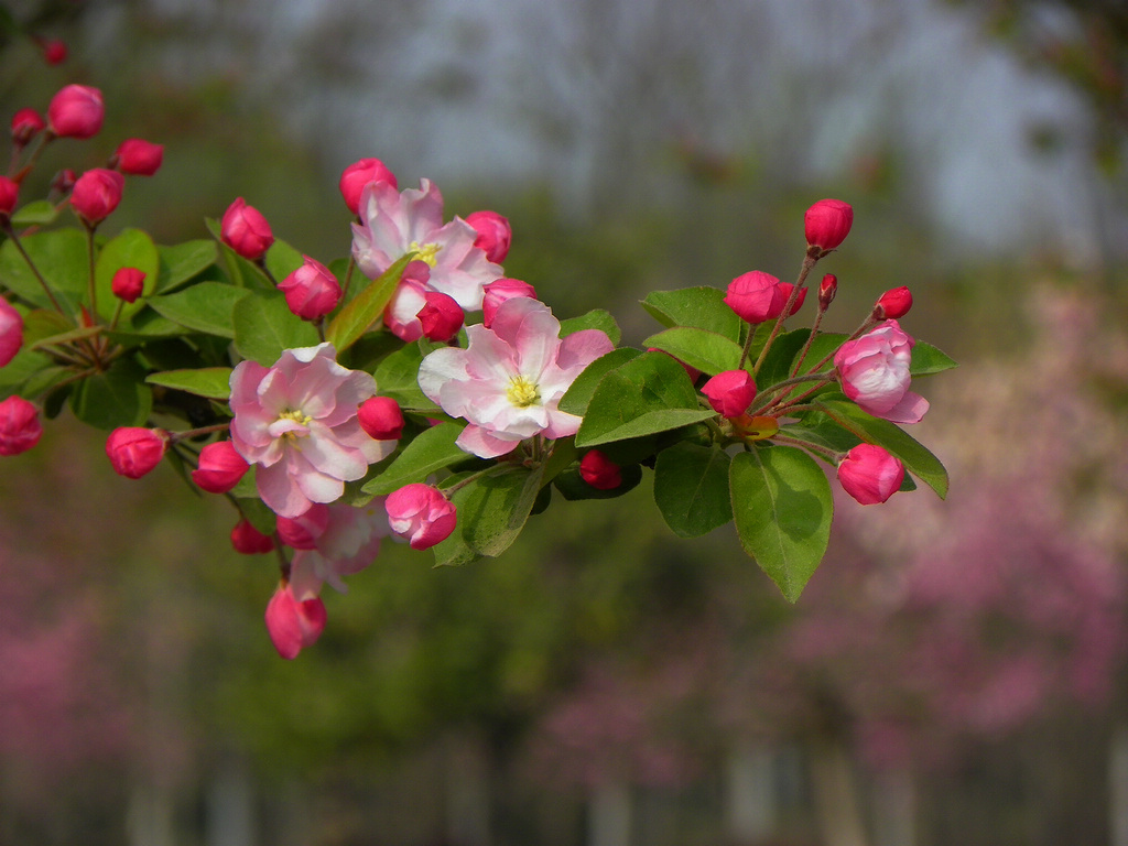 Small deciduous tree, up to 5 meters high, corymbs, with 4-6 flowers, thin pedicels, pink flowers, and pear-shaped fruits after the flowers fade. Begonia crabapple likes sunshine, warm and humid environment, and is intolerant to shade, cold and waterlogging.