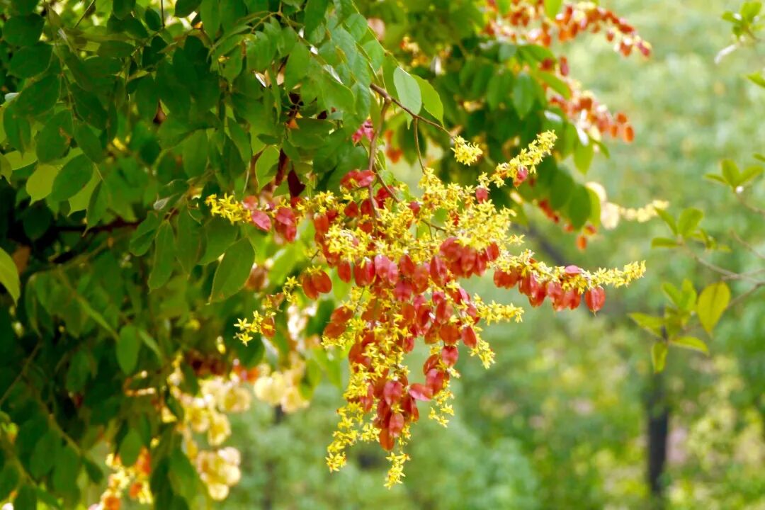 Deciduous trees, cymes panicles (25-40 cm long), with pale yellow flowers, slightly fragrant, pediceled, and beautiful lantern-like fruits can be viewed after the flowers fade.