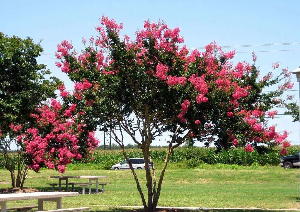 Small tree, up to 7 meters high, characterized by terminal panicles, bright and beautiful flowers (red, purple or white), long flowering period, long life span, up to 200 years old. Half-shade, fertile, humid, and drought-tolerant.