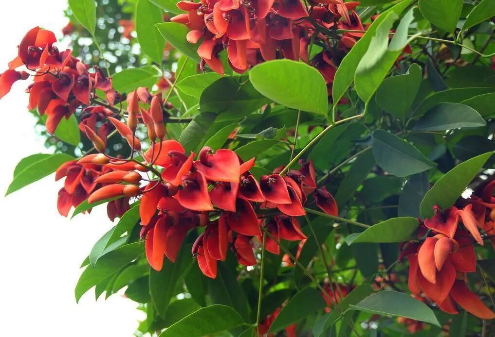 Small trees are similar to dragon tooth flowers, but they are not of the same species. The flowers of Erythrina cockscomb are orange-red, the flower shape is rounder (spoon-shaped), and the leaves are also different (long oval), which can be seen by flower lovers by comparison. He likes high temperature and high humidity climate and has strong adaptability.