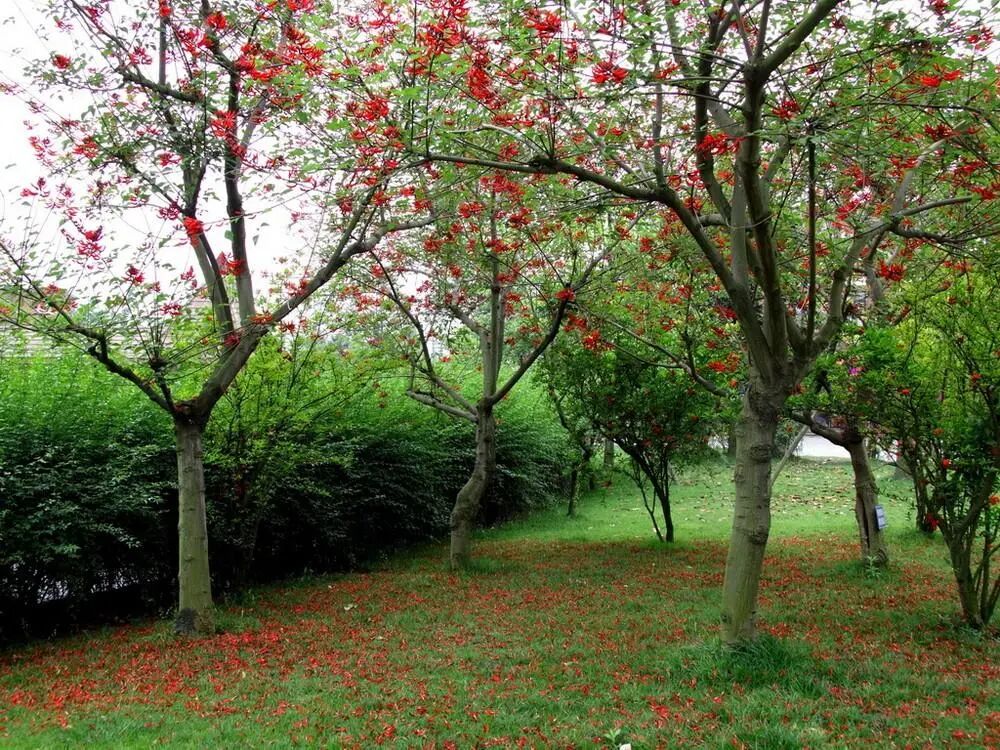 Large deciduous tree (southern specialty), up to 25 meters high, with solitary flowers at the top of the leaf axils, larger (about 10 cm in diameter), usually red (sometimes orange-red), fleshy. It grows fast, likes high temperature and humid climate, has strong adaptability, is resistant to drought and barren, and is not resistant to cold and waterlogging.