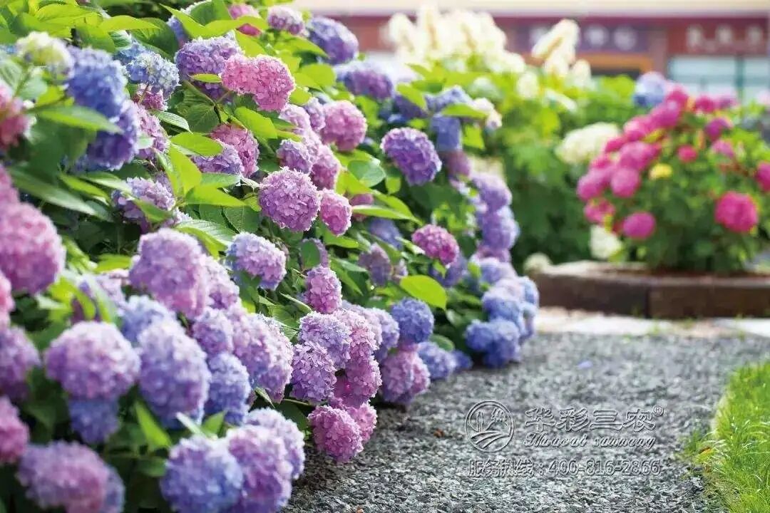 Shrubs, with large terminal "flower balls", 8-20 cm in diameter, are very colorful (flower colors will change with the change of soil pH), and are common potted ornamental flowers and trees.