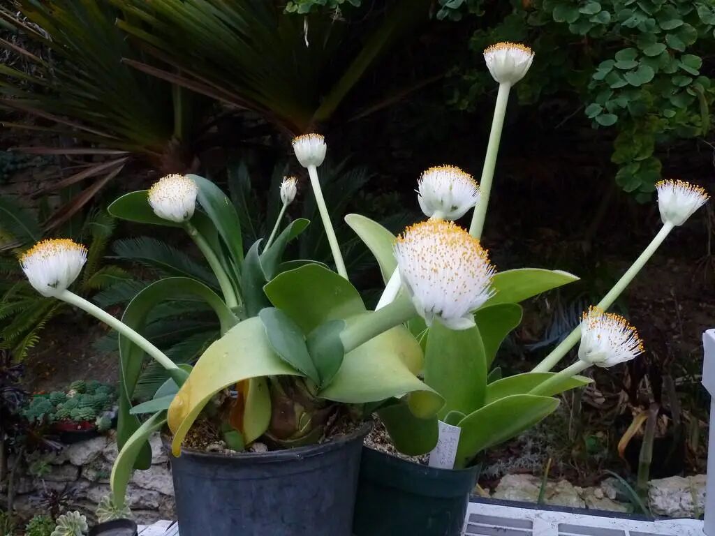 Perennial herbaceous plant, also a famous poisonous flower, has a terminal "flower ball" with a diameter of about 2.5 cm, and its flower color is white or yellow with purple red.