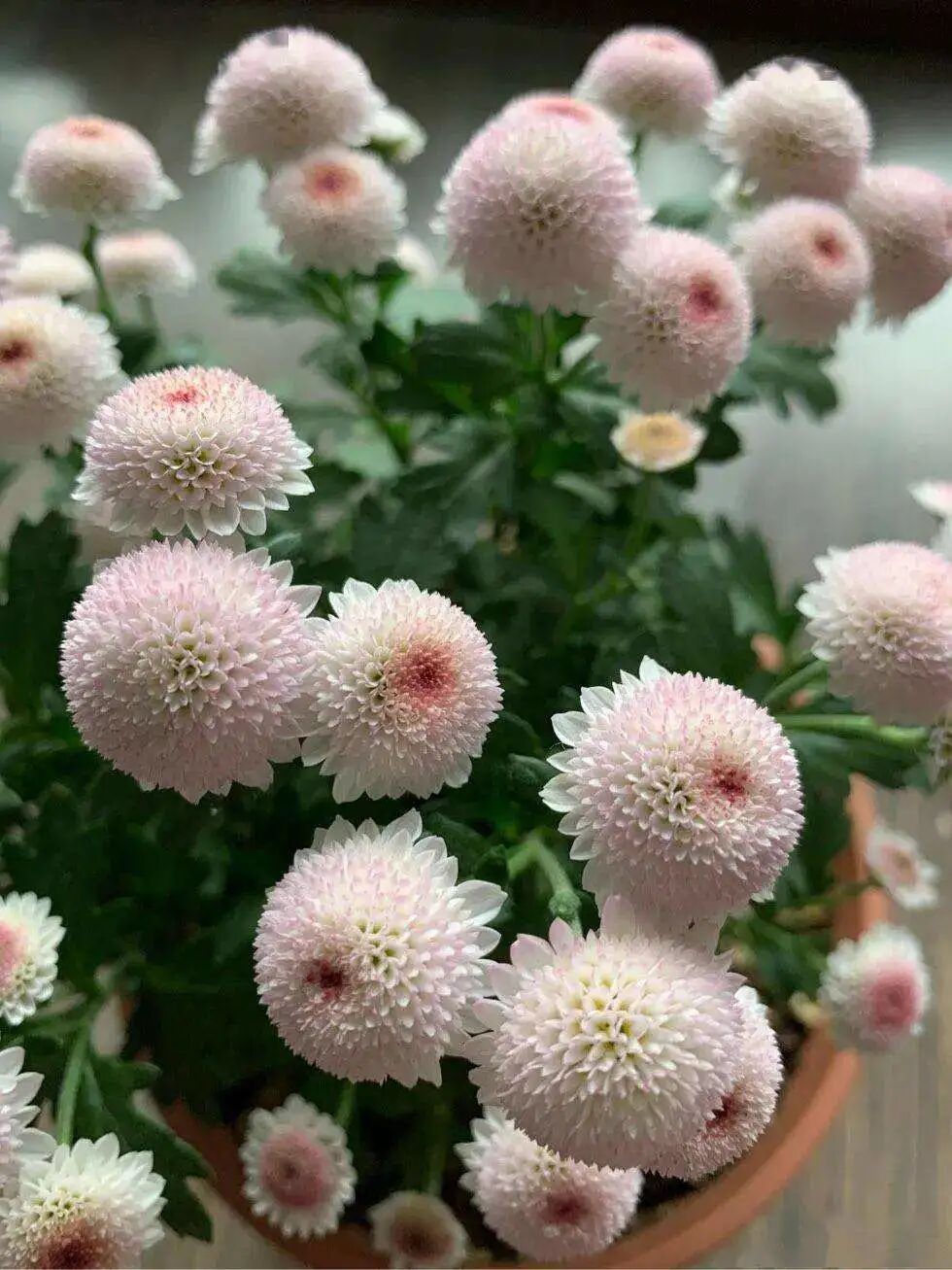 Uncommon but very favored Perennial herbaceous flowers of Compositae , a bit like ping-pong chrysanthemum, but small and cute, the flower color is more pink and rich, the petals are white (the center of the flower is pink), and the flower color will change with the temperature change.