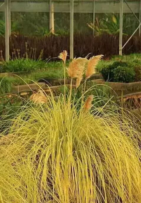 Pampas gold is a new variety of Pampas gold, with a plant height of about 120 cm. Its biggest feature is that its leaves are golden yellow, and its leaves and flower spikes are ornamental.