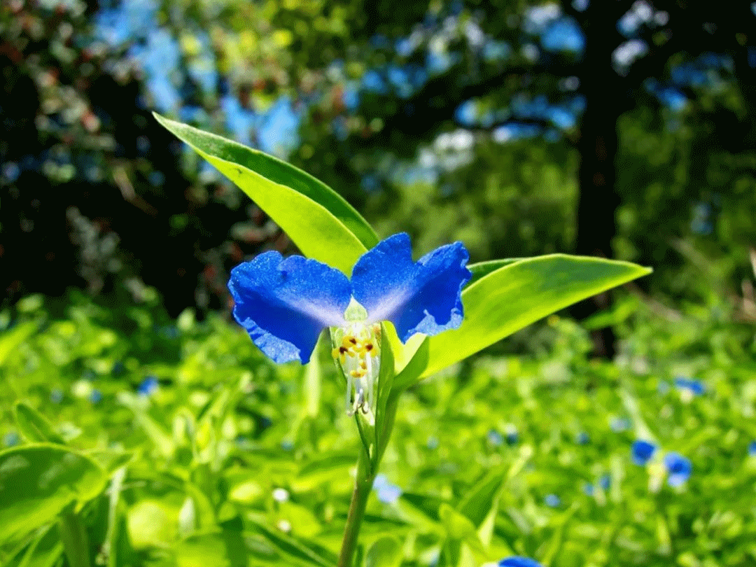 Annual herb, leaves lanceolate to ovate-lanceolate, alternate, stoloniferous. The flowers come out blue (the upper two petals are blue, the lower petal is white, and the buds are bud-shaped and green) as inflorescences, terminal or axillary. This model also has Commelina purple, which is dark purple and has pink flowers.