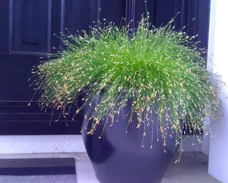 Clustered, leaves are slender, arc-shaped and drooping, evergreen, and flower spikes are feathery. Flowering Period Summer.