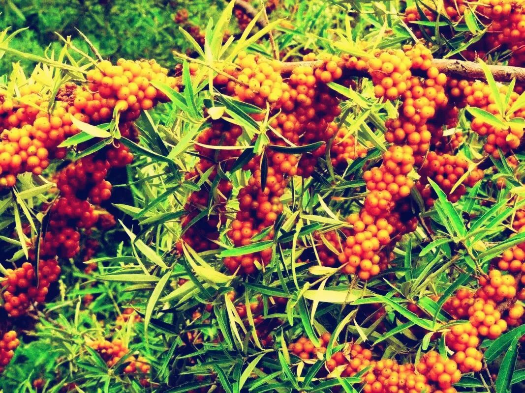 The fruit of sea buckthorn, a close relative of pyracantha fruit, " Sand Fixation Guard ", its fruit appearance is somewhat similar to that of pyracantha fruit. Pyracantha fruit is orange, with very high vitamin C content and full of vitamin C. Seabuckthorn juice is very popular 。