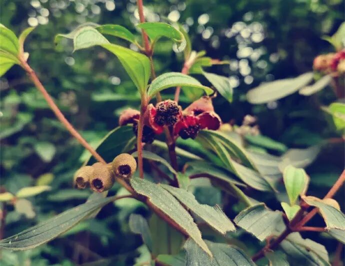 Wild peony is somewhat similar to myrtle, but when its fruit is ripe, it will explode from the middle, revealing the black flesh inside. When it tastes, it is a little sweet, and the seeds of the fruit rustle in the mouth.