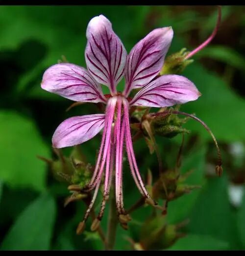 Leucorrhea lavender ( Or * ) The petals have Deep purple red veins, long stamens sticking out of the petals, very smart.