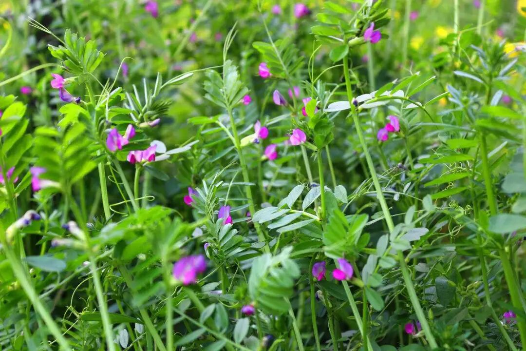 The flowers of vetch usually 5-10 clusters grow in Slender pedicel The tip, with purplish and orange-yellow colors, is usually seen as Purple red, open in pieces and pink like clouds.