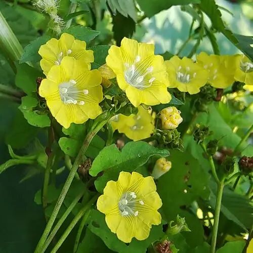 Look alone Is the flower of the hedge net very similar to the flower of the evening primrose, but it is yellow and vine type.