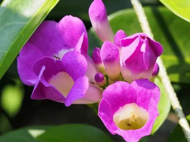 Of garlic vine After the flowers and leaves are rubbed, they smell of garlic, hence the name "Garlic Vine". AKA Purple bell vine, Zhang's purple blade.