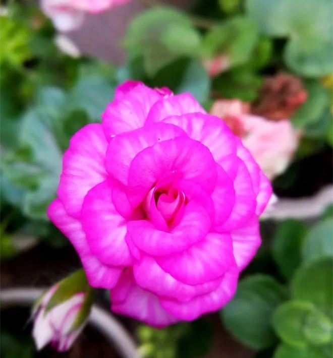 It has double flowers, The petals are layered , Flower pattern Like roses, It is the existence of the "ceiling" of appearance in the geranium family ; The flower color is gentle and fairy-like, pink-purple (Purple in full sunshine, pink in insufficient light) ; Diligent flowers, One that blooms almost all year round 。