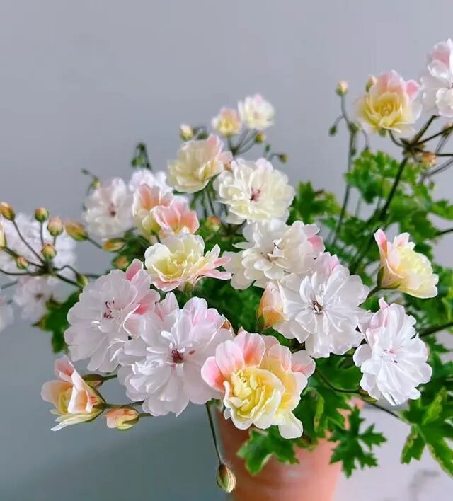 Laura · Marjorie Geranium of animal lineage (A cross between native anemara and modern erect geranium) , yes instantly A very popular "Internet celebrity" geranium variety, its The biggest feature is its high and special appearance, slender flowers and branches, Being ridiculed as → the most beautiful Geranium varieties, and the least like Pelargonium varieties of Geranium.