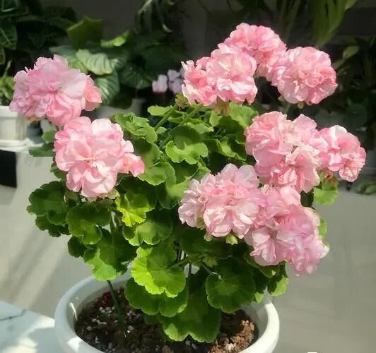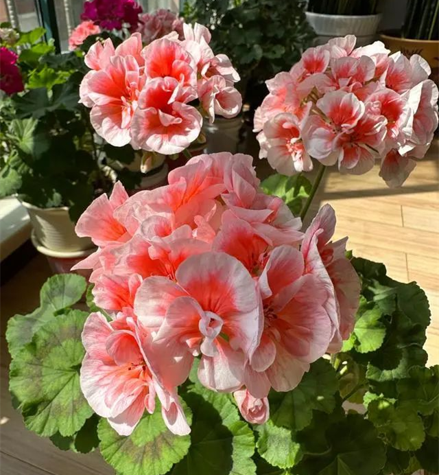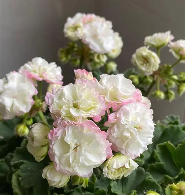 Its plants are about 50 cm (taller than the average upright geranium) ; Double large flowers can form a 10 cm + flower bulb (It's just a small hydrangea, and it won't bow its head yet) ; Flowers are pink-white to pink (Insufficient light means white, sufficient light means pink) ; Also The heat-resistant variety in the geranium family is easy to spend the summer.