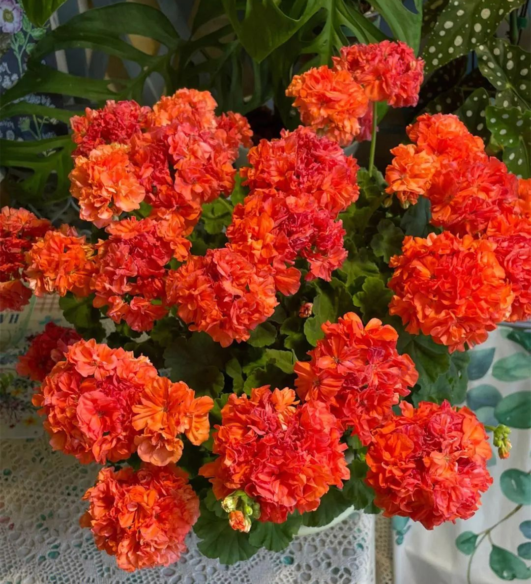 Its plant height is 20-30 cm, which is very suitable for planting in small spaces such as balconies; Double flowers, orange-red in color (Darker color than "Murray") Dazzling and gorgeous.