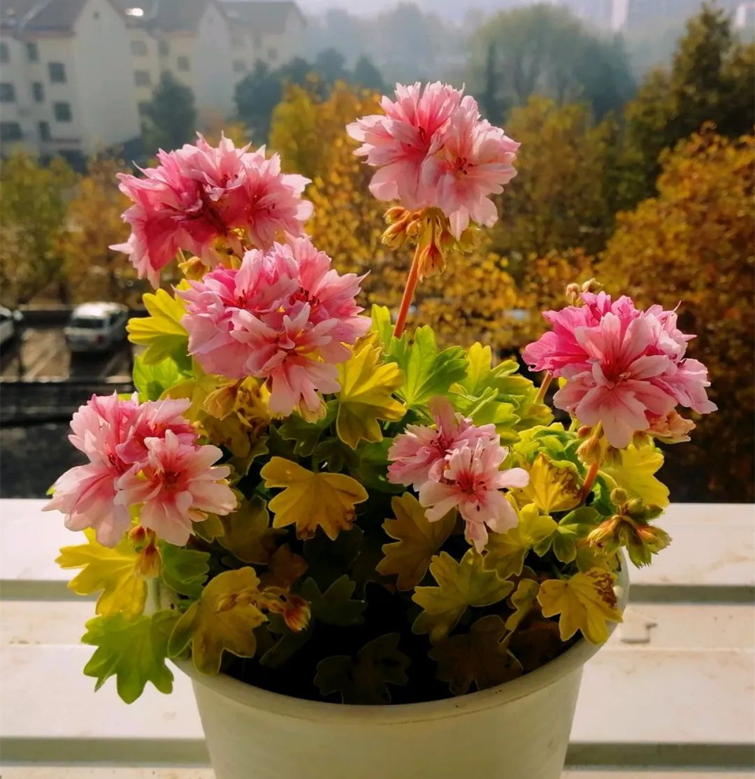 It's easier to keep (It is a relatively leathery kind in the geranium family) , The face value is also high, and it is also a rose-shaped double flower, with pink (purple) and white color (There is more pink and purple when there is sufficient light, and more white when there is insufficient light) 。